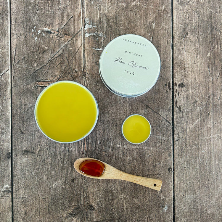 Handcrafted in Australia, our Bee Cream is a premium, all-natural healing ointment designed to be your go-to family essential. Blending Australian olive oil, hemp seed oil, beeswax, Manuka honey, and propolis with pure lavender and tea tree essential oils, this rich balm soothes, nourishes, and protects skin with every application.